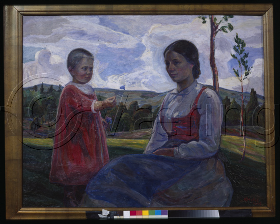 EN: From Gudbrandsdalen, Woman and child in landscape